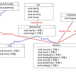 day15 190311 오늘은 실무에서도 굉장히 자주 쓰이는 문법인 '인터페이스(interface)'에 대해 배웠습니다.--final클래스 : 부모클래스의 상속을 금지한다.ex) publlic final class A // public class B extends A 사용방법이 같은 구현객체의 생성 첫번째 사진과 같이 클래스 구조를 짜고, 관계를 지어서 두번째사진과 같이 코딩으로 구현했습니다.Camera, AutoDrivable 인터페이스를 Safeale에 상속시켜서 인터페이스로 만들고, Car라는 인터페이스를 AbstractCar에 구현시키고 추상클래스로 만들어서 구현의 부담을 감소시키고, 각각 Tico와 Genesis에 상속시켰습니다.추가로 Genesis에 부가기능으로 Highpassable, Hea..