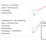 day12 190306 드디어 객체지향의 정말 중요한 부분인, 상속을 배웠습니다.상속의 특징으로 파생되는 메소드 재정의(Override), 다형성 등을 같이 배웠습니다.--클래스의 관계 2가지 -상속 관계 (is a관계)ex) iphone is a phone, android is a phone -포함 관계 (has a관계)ex) car has a engine : 객체 지향의 중요한 특징, extends키워드 사용 *자바는 단일 상속만 지원 *자식클래스는 부모클래스의 생성자와 private으로 선언된 것은 사용할 수 없다. (상속되지 않음) 상속의 목적 : 부모의 기능을 구현없이 사용하려고. 부모와 같은 종류가 되려고 12345678910public class Phone { String tel; publi..